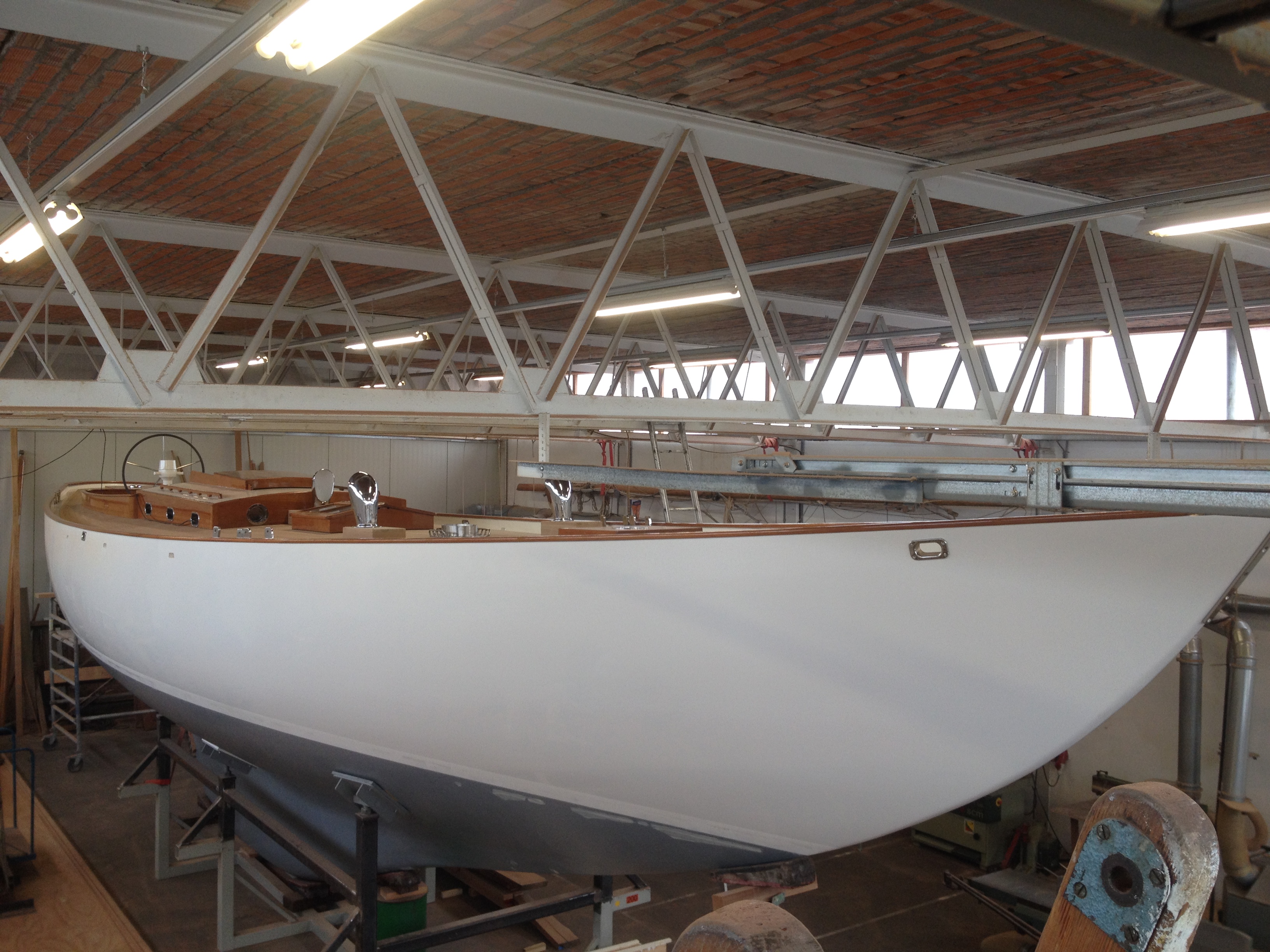Hoewel zij slechts 2.5 meter langer is dan Masquerade, heeft dit schip bijna het dubbele volume en daarom gaat het elke normale manier van denken te boven dat een man die in zijn eentje werkt en ook nog eens tussen zijn reguliere opdrachten door, in acht jaar tijd dit jacht heeft weten te bouwen. Wat nog verbluffender is, is de kwaliteit van de afwerking en de aandacht voor details. Net als Masquerade is het “strip-planked” gebouwd, dat betekent dat lange, dunne stroken hout worden vastgelijmd op een skelet van tijdelijke en permanente schotten. Wanneer de romp klaar is, worden de meeste schotten verwijderd. De romp wordt vervolgens voor de sterkte en gemak van onderhoud van binnen en van buiten bekleed met een glasmat. Na het plamuren, schuren en schilderen ziet het eruit als een echt klassiek jacht. Een effect dat wordt versterkt door het prachtige teakhouten dekhuis, de luiken, het zorgvuldig gelegde teakdek en de op maat gemaakte roestvrijstalen dekbeslag.